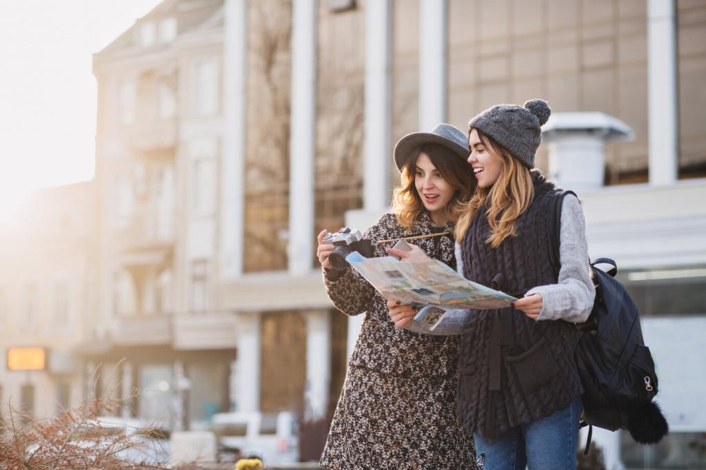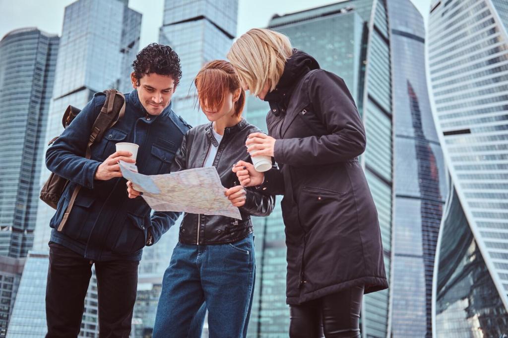 Markets breathe in the morning, commuters surge at dusk, and neon hums after dark. Plot a loop that passes contrasting micro-worlds, like a bakery alley, a transit hub, and a riverside path. Share your favorite neighborhood pairings in the comments to inspire everyone’s next city loop.